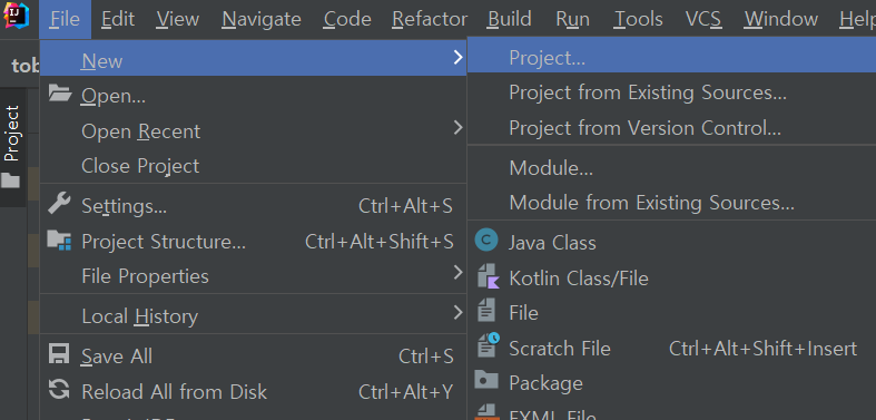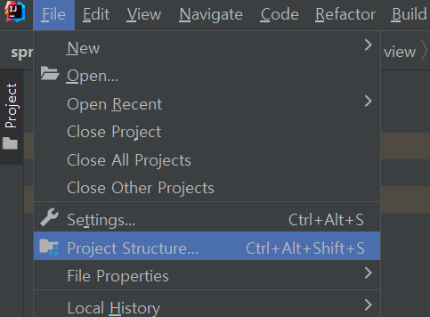 file -> Project Structure... 혹은 [ctrl + shift + alt + s]