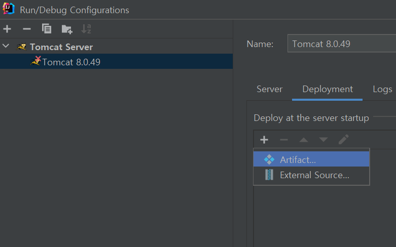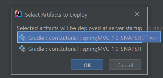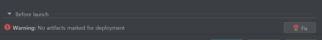 우측 하단 fix 클릭 혹은 Deployment 메뉴 선택 -> + 클릭 -> Artifact... 클릭 위에거 추가