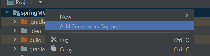 프로젝트 폴더에 우클릭 -> Add Framework Support...