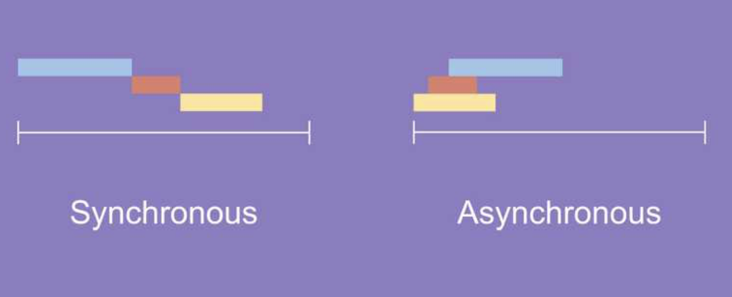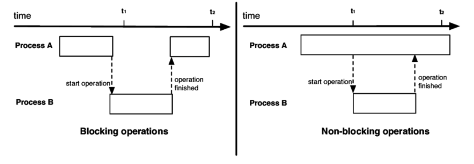 작업을 요청되고 완료를 기다리지 않고 다른 작업을 실행(한 작업이 완료되기를 기다리지 않고 다른 작업 실행, 완료가 되어도 즉시 처리하지 않음)