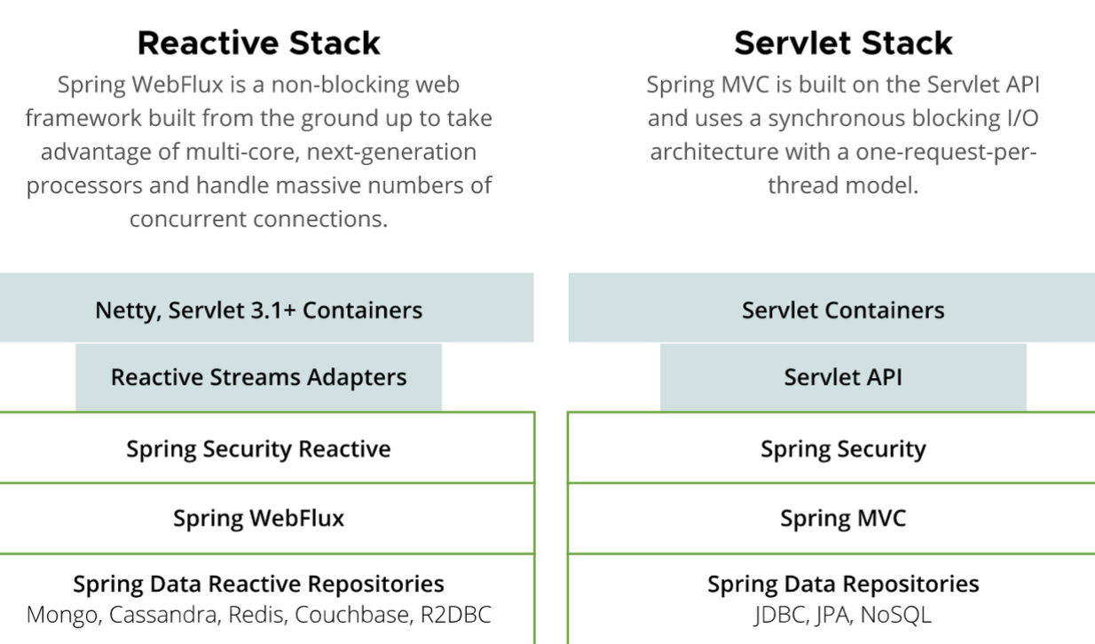 Reactive stack(Webflux)과 Servlet Stack(MVC)와 차이