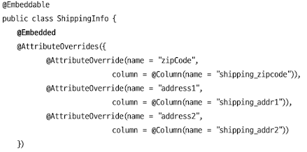 - 이와 비슷하게 벨로타입의 프로퍼티를 한 개의 컬럼에 매핑해야할 때도 있음.