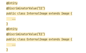- Image가 값객체이지만 @Embeddable 타입 클래스는 상속 매핑을 지원하지 않기 때문에 @Entity를 사용해야