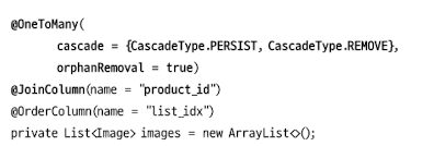 - @OrderColumn 에너테이션을 통해 지정한 칼럼에 리스트 인덱스값을 저장