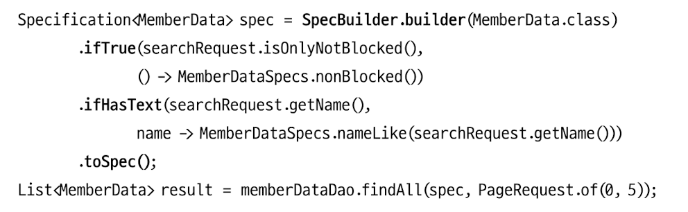 # 스펙 조합을 위한 스펙 빌더 클래스