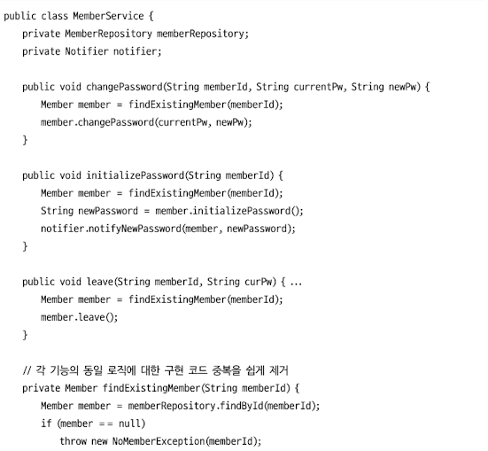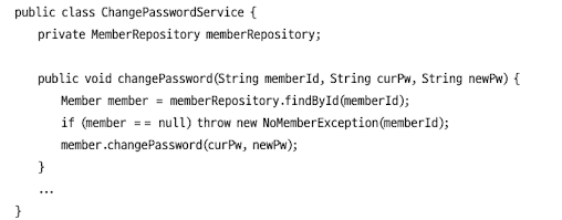- 응용 서비스가 복잡하다면 응용 서비스에서 도메인 로직 일부를 구현하고 있을 가능성이 높음