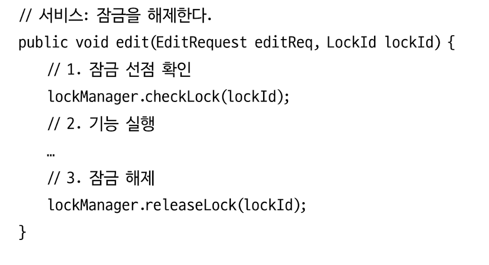 선점 잠금은 먼저 애그리거트를 구한 스레드가 애그리거트 사용이 끝날 때까지 다른 스레드가 해당 애그리거트를 수정하지 못하게 막는 방식이다.