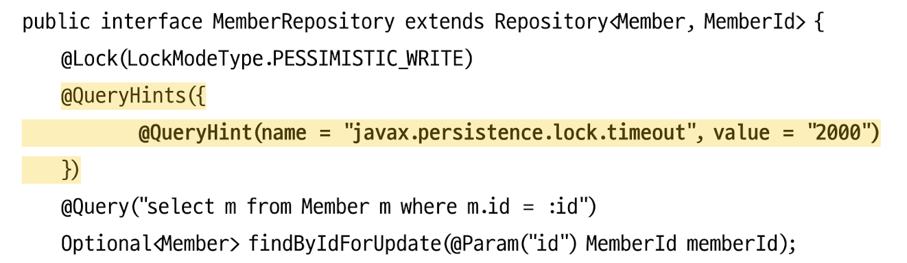 Data-jpa 에서는 @Lock Annocation을 지원한다.