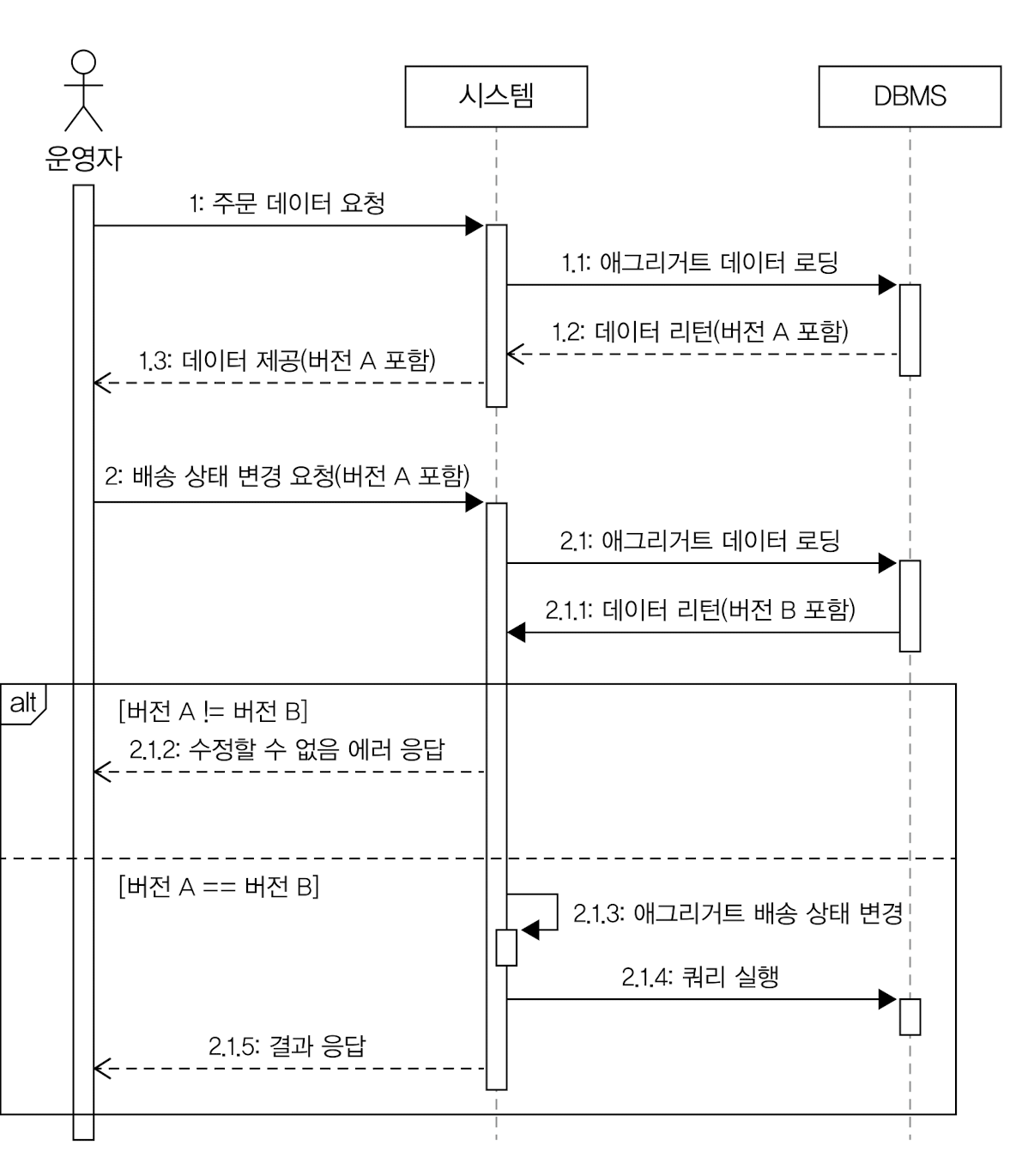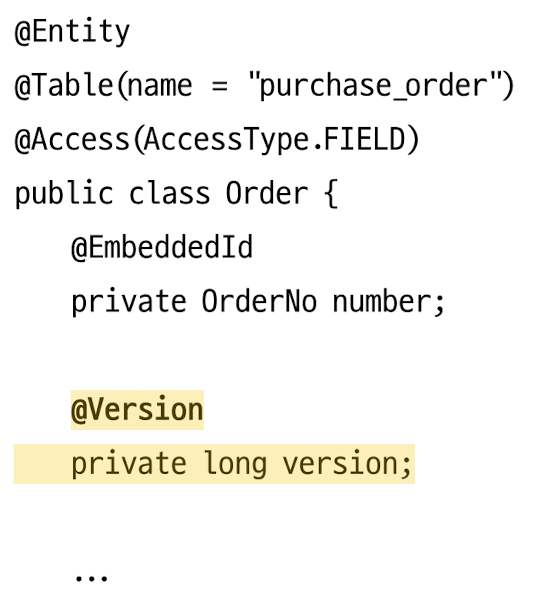 애그리거트와 매핑되는 테이블의 버전 값이 현재 에그리거트의 버전과 동일한 경우에만 데이터를 수정한다.