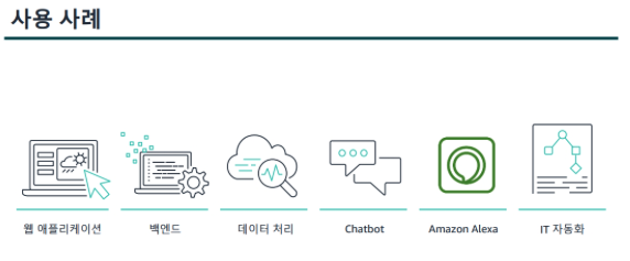 - 모든 컴퓨팅 리소스 관리 작업 수행(서버, OS 유지 관리, 용량 프로비저닝, 자동 크기 조정, 코드 모니터링 및 로깅 가능)