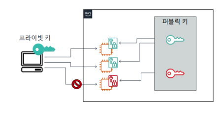- 퍼블릭 키는 EC2에 저장, 프라이빗 키는 사용자가 저장