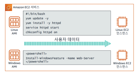 - 인스턴스 생성 시 사용자 데이터를 인스턴스에 전달할 수 있음
