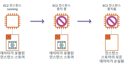 - 비영구적, 스냅샷 미지원, 인스턴스 중지 혹은 종료시 회수됨
