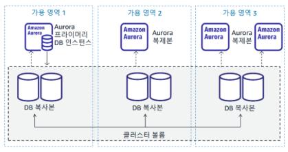 - 6개의 데이터 복사본은 3개의 가용 영역에 복제, 지속적으로 S3에 백업