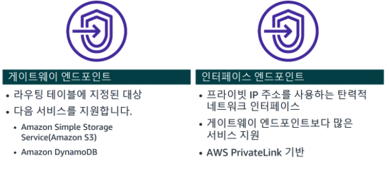 - VPC 엔드포인트는 VPC와 지원되는 AWS 서비스 간의 신뢰할 수 있는 경로를 제공