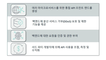 - API 생성, 게시, 유지 관리, 모니터링, 보호 가능