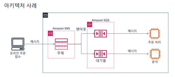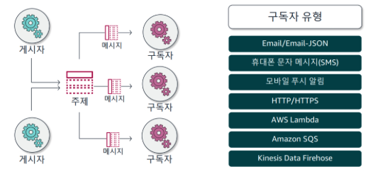 - SNS은 토픽과 일치되는 구독자에게 메시지 전송