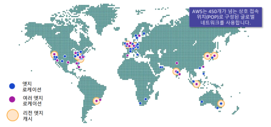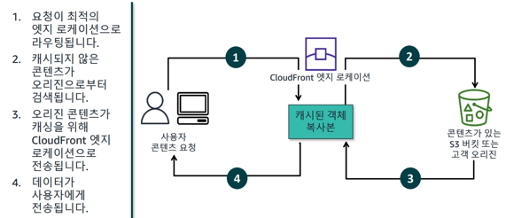 - 웹 컨텐츠의 캐시된 사본을 고객에게 제공하기 위해 엣지 로케이션의 글로벌 네트워크 사용