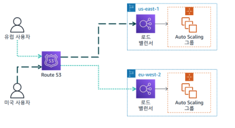 - 지리적 위치 라우팅 정책 : 사용자 위치 기준으로 트래픽을 라우팅하는 경우 사용