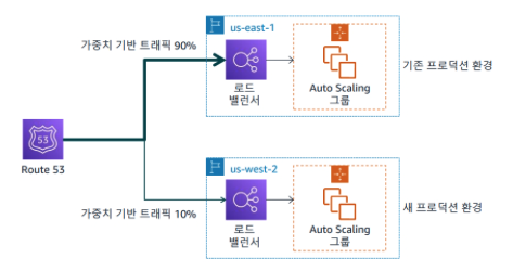 - 가중치 기반 라우팅 정책 : 트래픽을 지정한 비율로 여러 리소스로 라우팅하는 데 사용