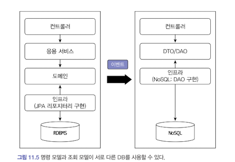 조회 모델은 조회 성능에 좋은 NoSql를 사용할 수 있다.