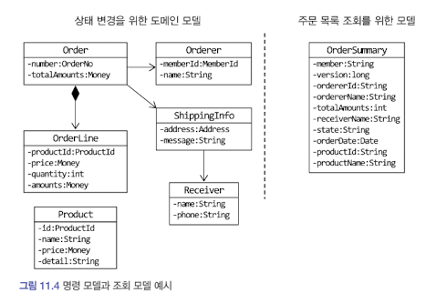 상태를 변경하는 범위와 조회하는 범위가 일치하지 않기 때문에 단일 모델로 두 종류의 기능을 구현하면 모델이 불필요하게 복잡해진다.
