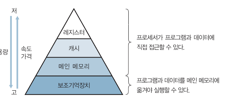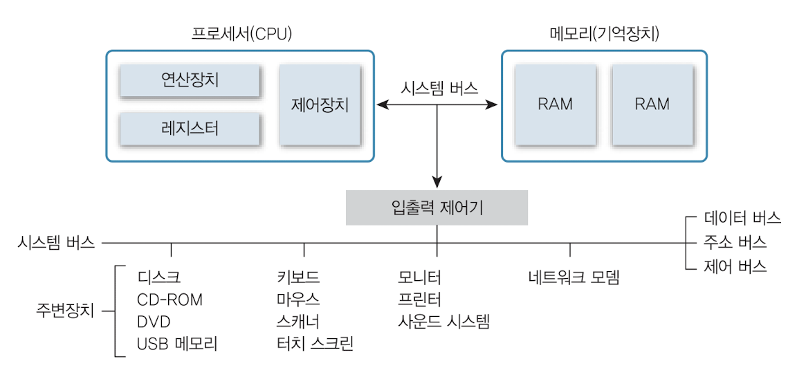 하드웨어는 크게 프로세서, 메모리, 주변장치로 구성된다.