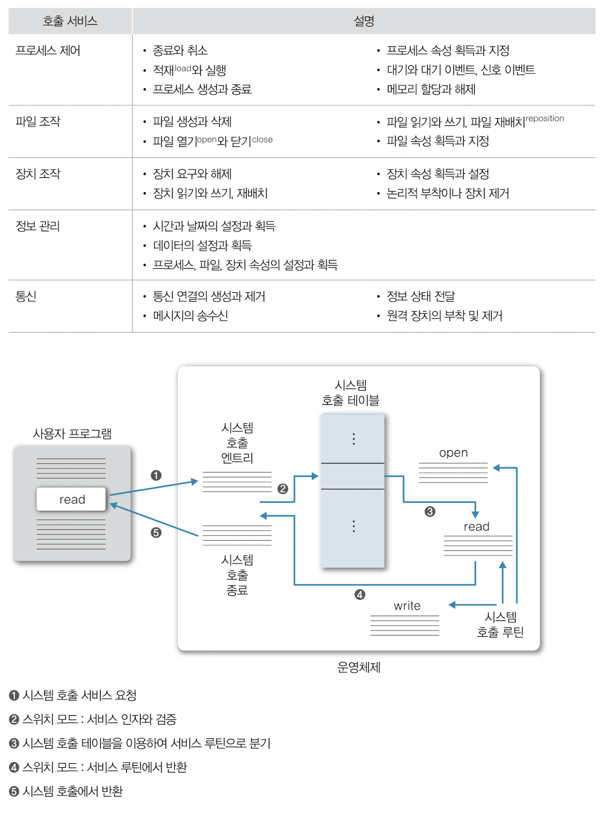 시스템 호출 예는 다음과 같다.