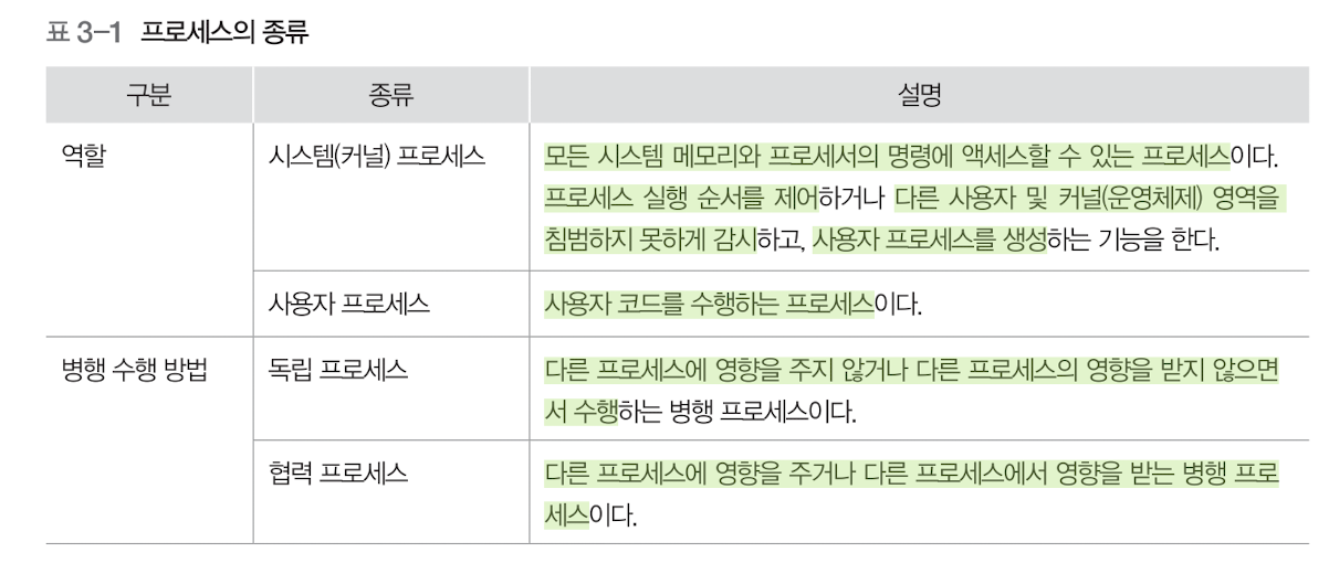 프로세스는 수행하는 역할 및 수헹 방법에 따라 다르게 구분할 수 있다.