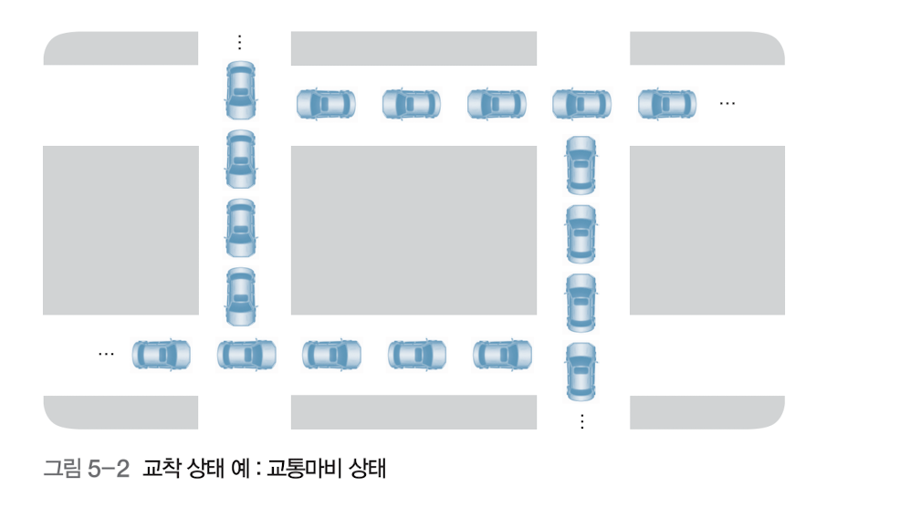 교착 상태는 시스템 자원에 요구가 뒤엉킨 상태로, 두 프로세스가 사용하는 자원(비공유)를 서로 기다리고 있을 때 발생한다.