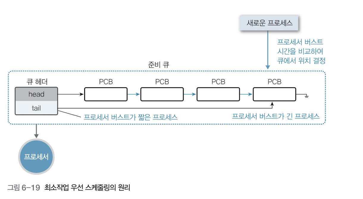 각 작업 중에서 실행 시간이 가장 짧은 프로세스에 할당하는 방법이다.