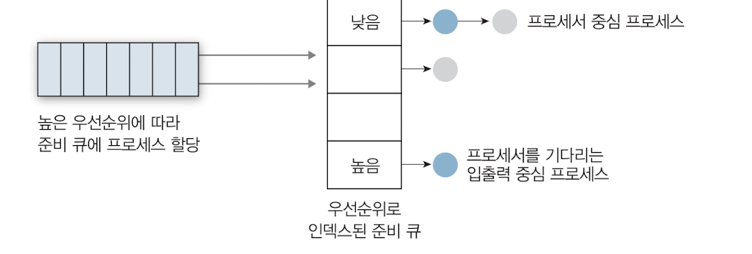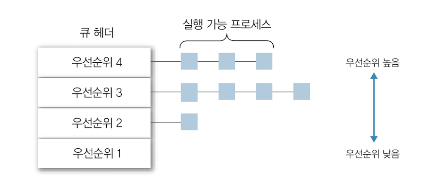 우선순위 별로 실행 큐를 다르게 설정한다.