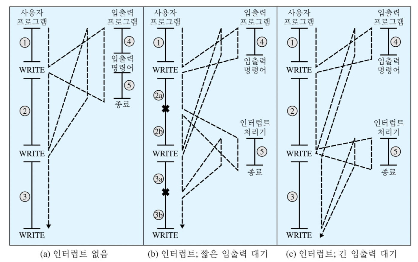 - 입출력 장치 대기시간을 최소화하기 위하여 인터럽트 제공
