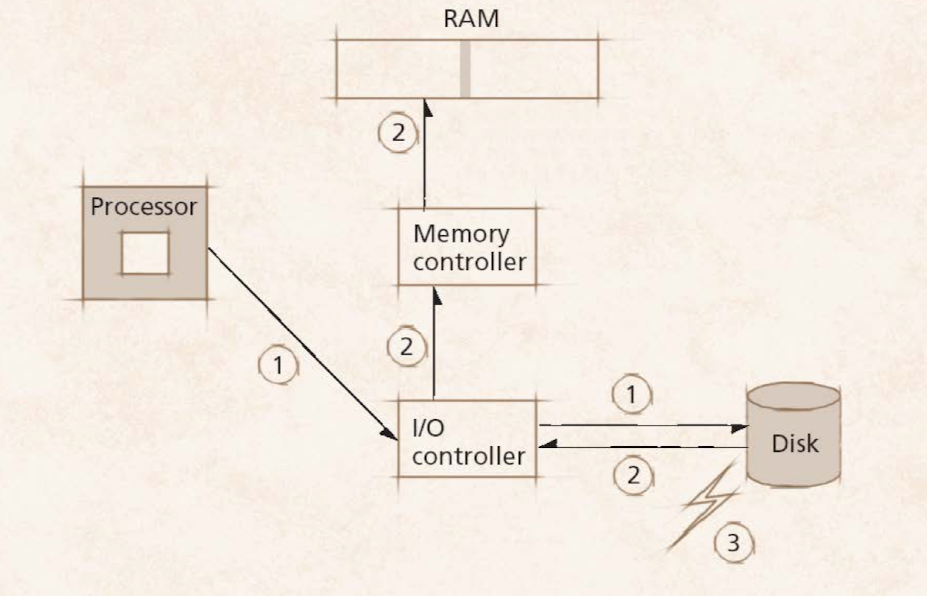 - 메인 메모리가 디스크에 저장된 데이터를 가져오기 위해 사용