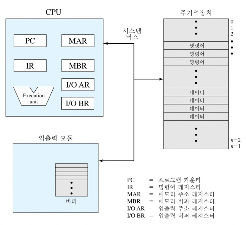 - 입출력모듈(I/O module): 외부 환경 간 데이터 이동 담당