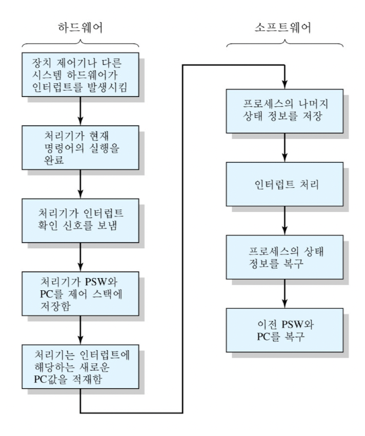 - 처리기는 프로그램의 실행 문맥을 저장하고 인터럽트 처리 루틴을 실행