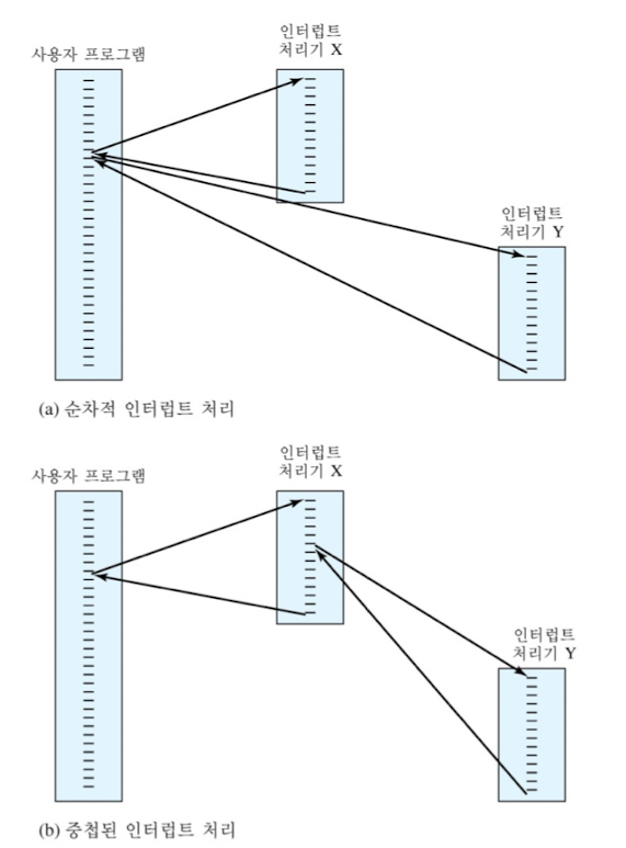 - 순차적 인터럽트 처리는 한 인터럽트가 끝난 후에 다른 인터럽트를 처리.