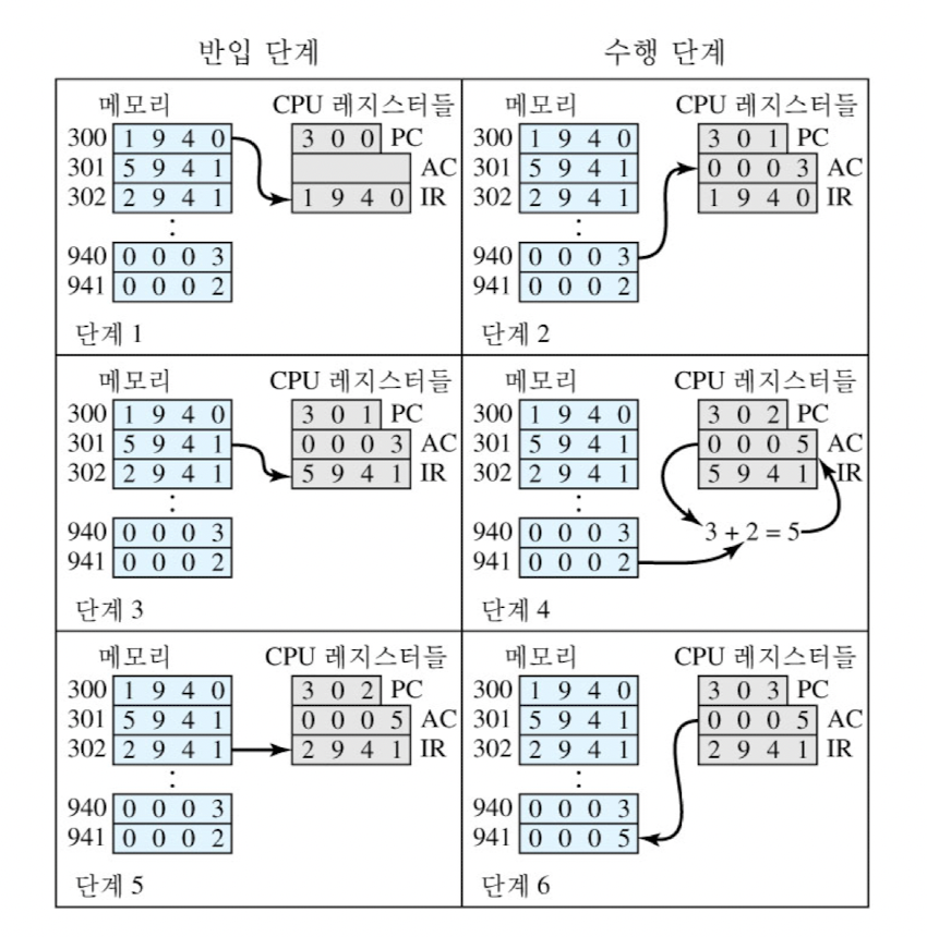 - 연산 결과를 AC에 임시 저장- 3단계(반입): 301번째 메모리에 저장된 명령어를 IR로 적재