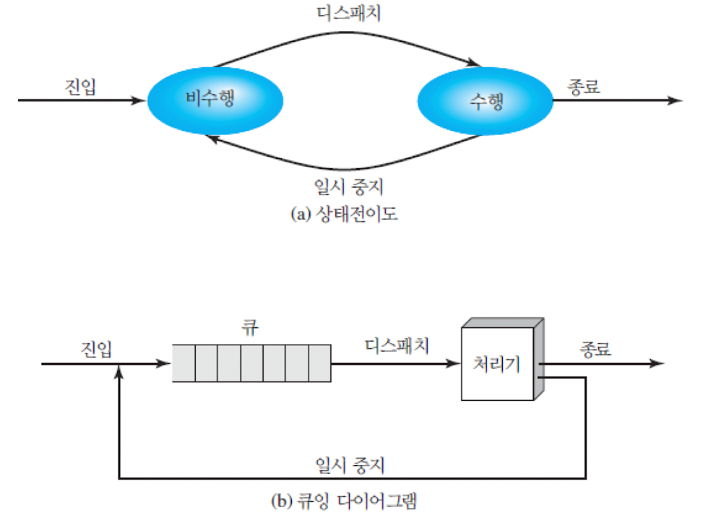 - 프로세스는 수행(Running) 또는 비수행(Not-Running) 상태 중 하나에 있음