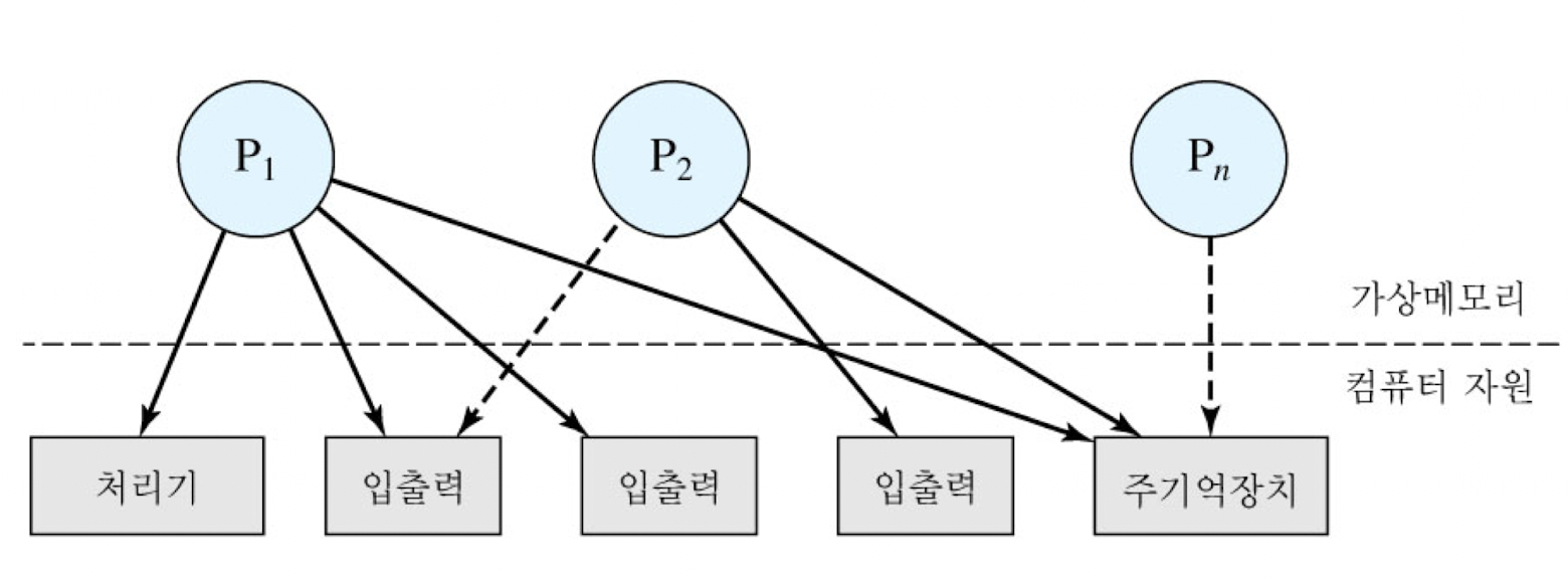 - 각 프로세스 및 자원의 현재 상태에 대한 정보 유지