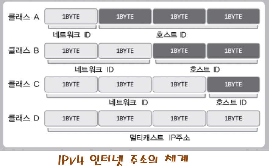 - 첫 번째 바이트 정보만 참조해도 IP 주소의 클래스 구분 가능