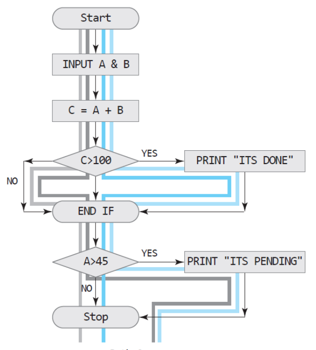 - 순환 복잡도가 3이므로 3개의 경로에 해당하는 테스트 케이스 생성