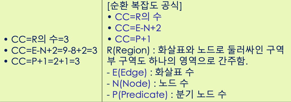 - 싸이클로메틱 복잡도(CC) 개수만큼 테스트 케이스 도출