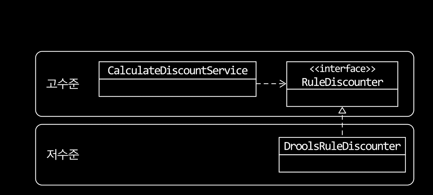 - DIP 적용시 하위 기능을 추상화한 인터페이스는 고수준 모듈 관점에서 도출